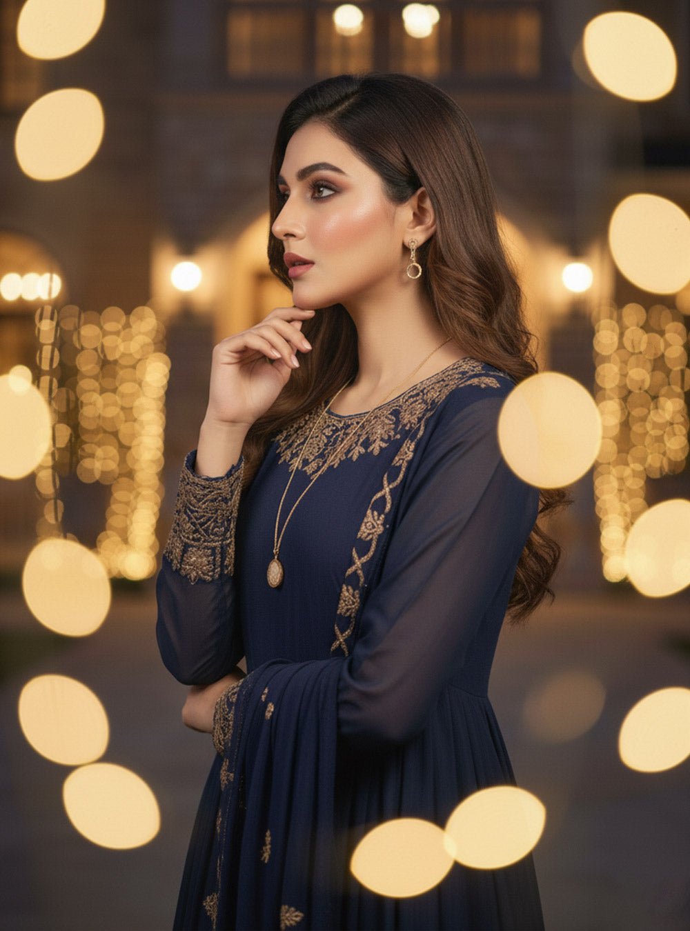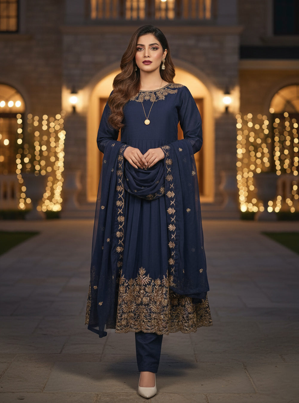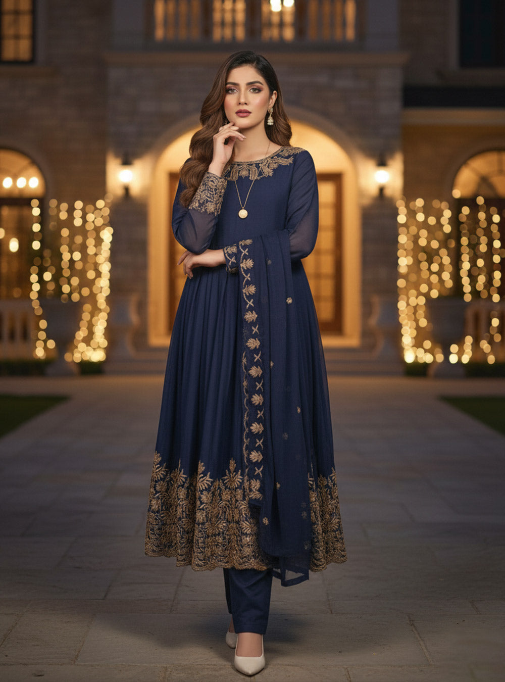 Drape yourself in sophistication with the Elegant Chiffon Ensemble, a timeless three-piece outfit perfect for formal events and celebrations.